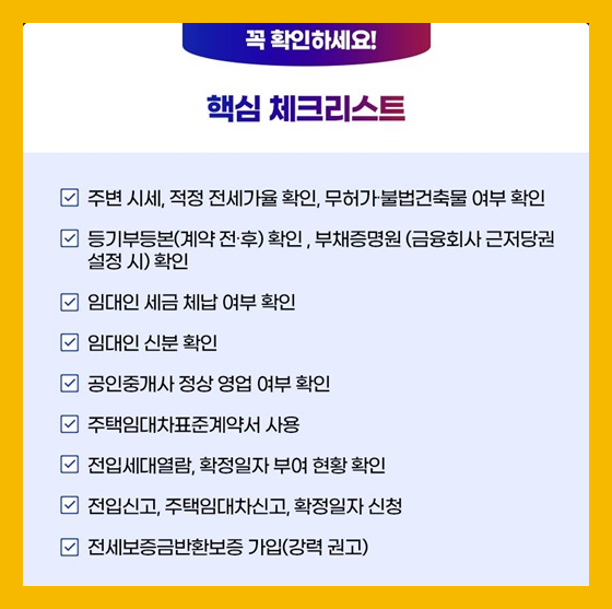 이 기본만 지켜도 전세사기 피해를 예방하는 데 큰 도움이 됩니다.